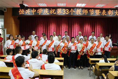 ? ? ? ? 9月9日下午,學(xué)校教職員工歡聚一堂,在多媒體教室(1)熱烈慶祝第33個教師節(jié)并舉行了隆重的表彰大會。廈門恒興集團董事長柯希平先生撥冗蒞臨學(xué)校與全體教職員工共度一年一度的教師節(jié),出席本次大會的還有新一屆的學(xué)校董事會成員。本次大會由林文土?xí)浿鞒?。慶祝表彰大會由校長致辭、表彰儀式、教師代表發(fā)言、學(xué)生代表發(fā)言、柯董講話五個部分組成。