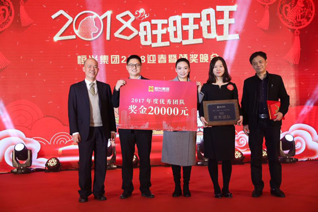 ? ? ? ? 金雞辭舊歲,瑞狗送春來。2月11日晚,恒興集團(tuán)2018迎春暨頒獎晚會在五緣灣凱悅酒店絢爛開場。這場一年一度的恒興尾牙盛宴,不僅有激勵人心的頒獎典禮,還有精彩紛呈的員工表演,以恒興人特有的方式迎接繁華興“旺”的2018。