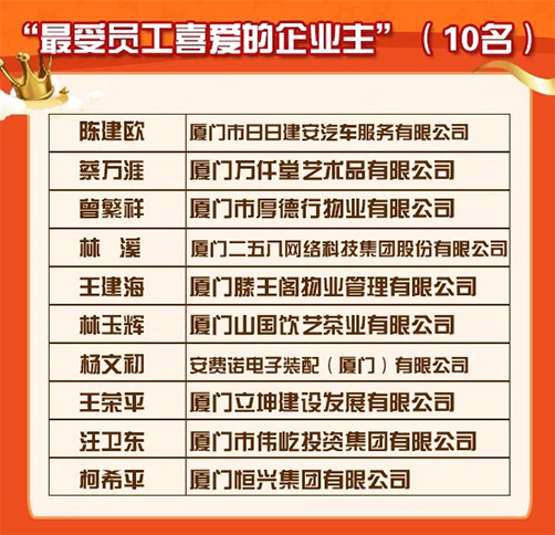 恒興集團(tuán)曾榮膺智聯(lián)招聘“2016年度廈門雇主十強(qiáng)”以及獵聘“2017福建創(chuàng)新非凡雇主獎(jiǎng)”。此次柯希平董事長榮獲“員工喜愛的企業(yè)主”也是眾望所及,實(shí)至名歸。