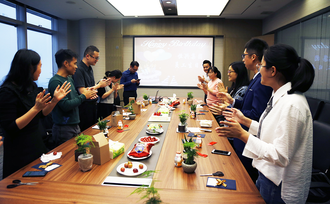 3月29日下午4點(diǎn)45分,隨著現(xiàn)場(chǎng)歡樂(lè)的音樂(lè),20余名受邀前來(lái)參加生日party的壽星歡聚在41層大會(huì)議室。隨著主持人的開(kāi)場(chǎng)介紹,開(kāi)啟了第一季度員工生日會(huì)。活動(dòng)現(xiàn)場(chǎng),辦公室主任吳勇慧為壽星們送上生日賀卡,并感謝所有壽星對(duì)公司所作出的貢獻(xiàn)。接下來(lái)進(jìn)入DIY綠植環(huán)節(jié),各位壽星合力搭檔把一株株小綠植種進(jìn)了小黑罐里頭,并給小綠植撒上陶粒作為裝飾,播種希望的同時(shí)也收獲了歡樂(lè)。緊接著進(jìn)入了生日會(huì)的重要環(huán)節(jié):吹蠟燭、嘗蛋糕、許心愿,所有壽星齊唱生日快樂(lè)歌后,由壽星代表許麗靜為大家切分蛋糕,在品嘗蛋糕和寫心愿卡環(huán)節(jié)時(shí),每位壽星臉上都洋溢著歡樂(lè)和甜蜜的笑容。最后,聚焦的鏡頭留下了本次生日會(huì)壽星們的身影,集體合照為本次生日會(huì)畫上了一個(gè)完美的句號(hào)。鏡頭上員工們的歡樂(lè)笑臉,正是公司構(gòu)筑一個(gè)充滿關(guān)愛(ài)的恒興大家園的溫馨畫面!