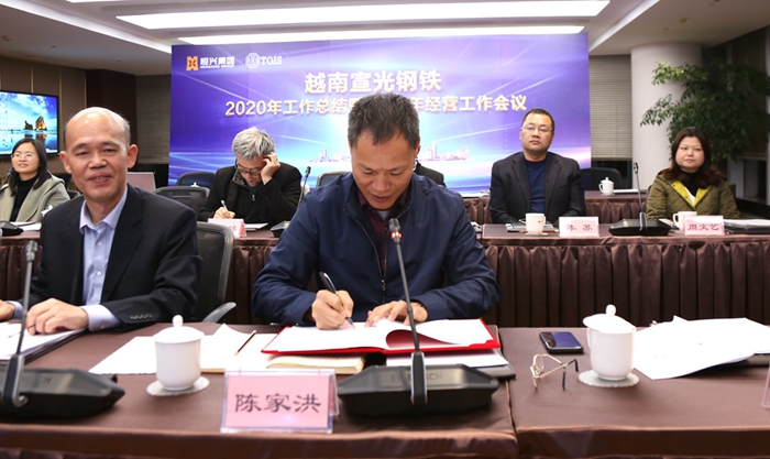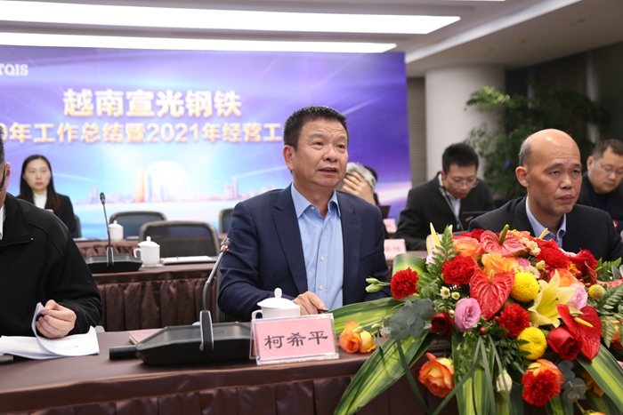 集團董事長柯希平、副董事長羅映南、董事副總裁陳家洪、董事副總裁王偉文等集團董事會成員,及相關(guān)職能部門負責(zé)人,與遠在越南的宣鋼管理團隊共同出席了本次工作會議??孪F蕉麻L在總結(jié)發(fā)言時,肯定了宣鋼2020年在疫情之下所取得的成績,并向宣鋼公司全體同仁表示感謝。