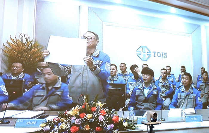 最后,集團和宣鋼公司在視頻兩端進行2021年目標(biāo)責(zé)任書的簽訂,集團陳家洪副總裁和宣鋼公司張群總經(jīng)理分別作為代表簽字。? 柯希平董事長還不忘在會議結(jié)束時,提議宣鋼的員工們一起聚餐跨年,迎接新年。