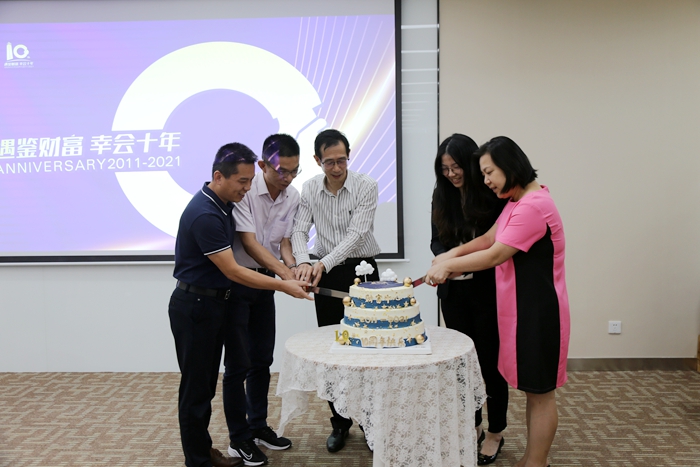 最后,伴隨著歡快的生日祝福的音樂聲,恒興資產(chǎn)管理公司總經(jīng)理宋維超邀請“十年榮譽(yù)客戶”共同切開象征著溫馨而甜蜜的慶祝蛋糕,祝福財(cái)富中心10周年生日快樂,也祝福財(cái)富中心所有的入駐企業(yè)蒸蒸日上,越來越好。