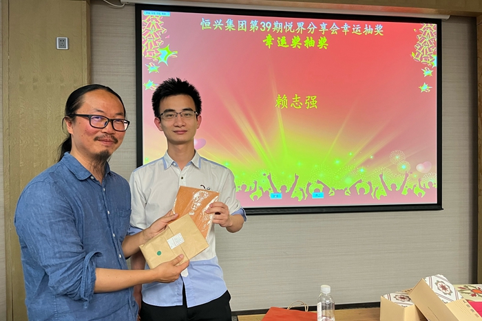 本期悅界分享會的精彩,足見這份被延誤的等待是值得的。互動環(huán)節(jié),同事們積極提問,提問者均獲得舊物倉“舊”字對杯。最后抽獎環(huán)節(jié),品牌部賴志強獲得楊老師親自推薦的書籍和花磚包袋,為活動畫上圓滿的句點!??